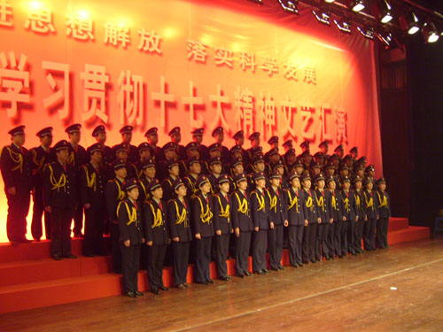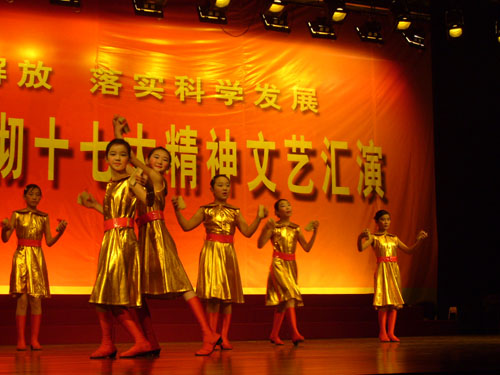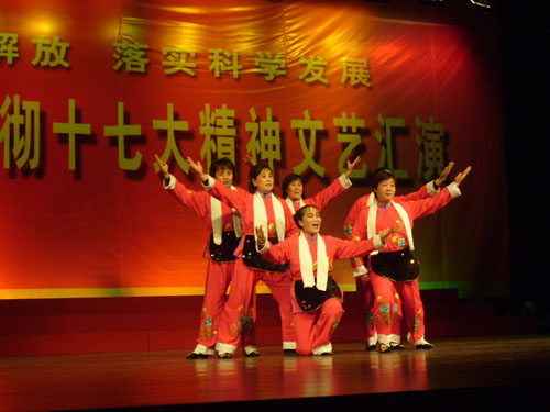 演出在唐海职教中心师生艺术团的舞蹈《和谐乐章》中拉开序幕,《红旗飘飘》、《大中国》、《大地飞歌献给党》、《颂歌献给十七大》等一首首耳熟能详的歌曲引起大家的共鸣,充分展示了中国共产党领导人民创建社会主义事业的宏伟画卷;诗朗诵、独唱、舞蹈、快板表演等各具特色的表演形式,表达了全县人民学习贯彻党的十七大精神的喜悦之情和永远跟党走的决心,表达了对未来美好生活的向往,以及对唐海县当好沿海经济隆起带上排头兵和科学发展示范区主力军,建设临港经济强县的坚定信心。