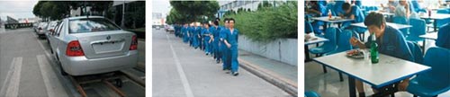 吉利的冲压车间非常昏暗,而且也不怎么干净。而且我们发现,吉利对工人们的保护并不到位,在很多需要保护眼睛的岗位上,吉利的工人们也没有得到相应的保护,比如戴保护眼镜等等。在工厂区,我并没有看到什么破坏研究室之类用以对部件进行抗疲劳抗损害测试的地方,那么他们是怎么保证产品部件的设计和制造是合格的呢?既便如此,吉利公司似乎也没有忘记对未来继续许下承诺,根据他们最近的发言,我们甚至看到了在2015年赶上马自达,三菱或者宝马这样的宣言。。。。
