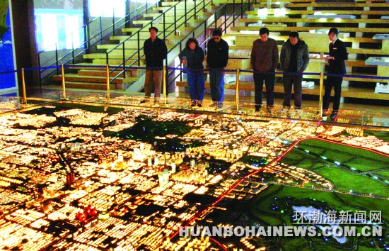 我市未来城市发展规划备受市民瞩目。图为昨天市民参观城市规划沙盘。