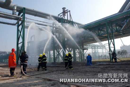 曹妃甸工业区举行消防演习(图)