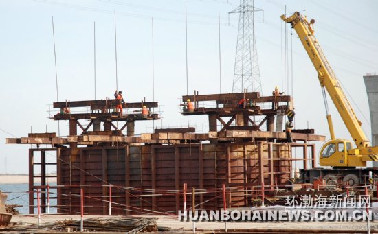 曹妃甸工业区一号路跨纳潮河大桥建设中(图)