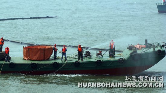 6月25日,曹妃甸首次针对30万吨级原油码头安全生产进行专项海上溢油应急演习,共出动巡艇及辖区各类船舶8艘、海事人员及其他工作人员150人,并邀请当地油类作业单位到场观摩。通过演习,提高了辖区应对海上溢油事故的处置能力、组织协调和现场指挥能力,检验了相关预案和应急程序的可操作性,提高了辖区海上溢油应急反应处置能力。图为演习现场。刘洁雪 摄