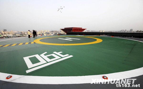 这是3月18日在世博中心屋顶上拍摄的世博园区直升机坪。