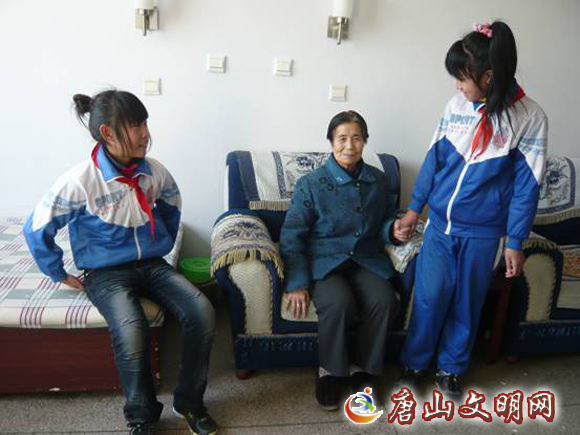 小学生帮老人梳头、整理房间