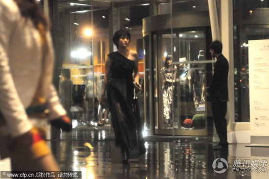 腾讯娱乐2012年05月27日讯(图文/CFP)近日“丑女”李欣汝一身黑色裙装露着大腿独自出现在某酒店大堂,当天李欣汝走进酒店之后并没有直接上楼,而是来到大堂沙发处找自己的朋友,然后挽着朋友的胳膊一同上楼休息。
