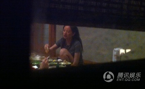 赵薇蹲坐吃饭