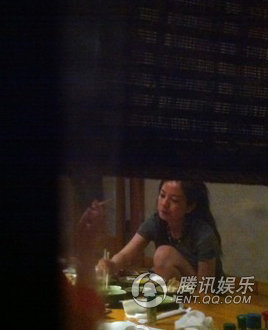 赵薇约友饭聚吃相豪迈 素颜蹲坐显气场