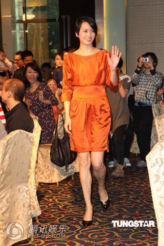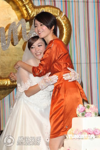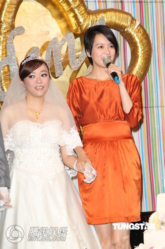 梁咏琪裙装帮歌迷证婚 露面即抢新人风头