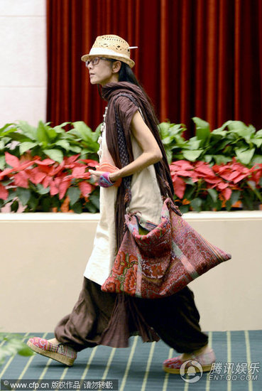 腾讯娱乐讯(图文/CFP)9月3日下午4点,54岁杨丽萍匆匆从广州赶回昆明,参加云南舞蹈节新闻发布会,出席时,其一身混搭民族风十分惹人喜爱,背着长布包,很有范。