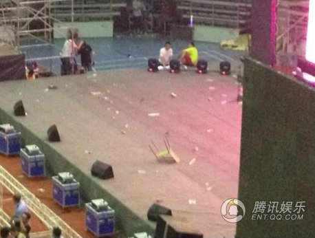 网友称原因是主办方现场广告如“潮水”,除梁静茹黑脸唱三首歌就退场外,间歇的中场竟然还有酒吧歌手上台演唱,而张信哲刚上台更是被失控的观众撂凳子水瓶吓下去了。半场时愤怒的观众冲上舞台喊退票,部分观众更向舞台投掷水瓶和凳子,并砸坏现场音响设备。该演唱会最高票价超过1600元。现场一片混乱。据了解,该演唱会最高票价超过1600元。