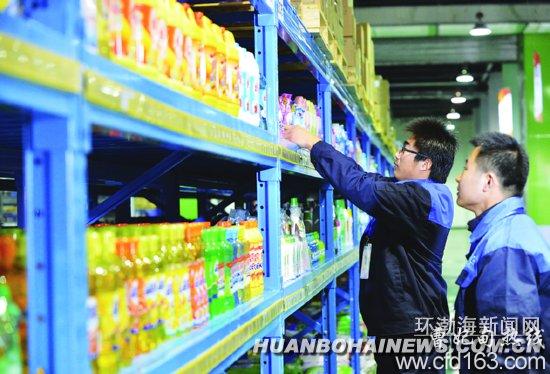 日前,唐山曹妃甸中购电子商务有限公司B2B电子商务平台正式运营。中购是国内首家整合了电子商务、物流、仓储等多个供应链环节,提供“点到点、门到门”服务的大型电子商务平台,服务内容遍及衣食住行。图为仓储基地内摆放整齐的货物。