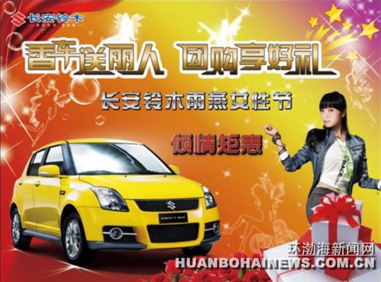 3月8日-10日下午3时至4时,唐山京津长安铃木为女性车主奉上一场购车饕餮盛宴,免费精美礼品,同时,活动当天团购经典款雨燕,还将享受前所未有的空前钜惠并有大型的现场抽奖活动,此次名额非常有限详询0315-5285335