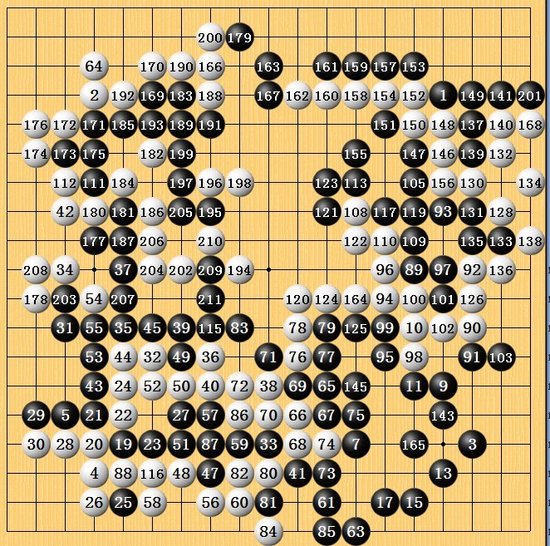 前两局双方各胜一局,今天迎来最后的决战。第三局重新猜先,陈耀烨执黑先行,没有再选择目前最流行的中国流,因为前两局走中国流的一方都输了棋。布局阶段黑棋好下,这也难怪,中国引以为豪的集体研究,主要是也只能是序盘研究,把各种布局套路研究得较深。当然,如果不能在布局占得稍许优势,那么面对李世石强大的中盘力量,可能就没法下了。