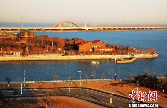 图为曹妃岛酒店和跨海大桥。 翟羽佳 摄