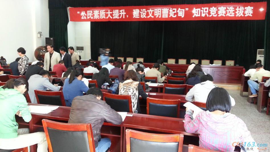 10月11日上午9点,曹妃甸区举行了“公民素质大提升,建设文明曹妃甸”知识竞赛选拔赛,来自区直机关的21个代表队共63名参赛人员参加了考试,区委常委、宣传部长佟秀媛、区直机关工委常务副书记许乐民对考场进行了巡视检查。