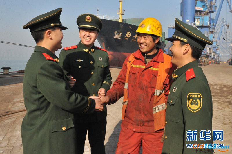 新华网消息:近日,河北边防总队曹妃甸边防检查站监护中队班长罗春宇带着刚刚下连队不久的新兵们与码头工人“认亲结对”。这是这个站自建站以来坚持了多年的传统,每年新兵下连后,老兵们会带着新兵到码头与在一线作业的工人师傅们“认亲结对”,帮助远离家乡的他们解决实际困难,为他们带去来自边检官兵的温暖与快乐,增进了警民间的关系。(李梦娇)
