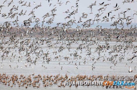 唐山沿海迎候鸟迁徙潮 数万只光临曹妃甸湿地