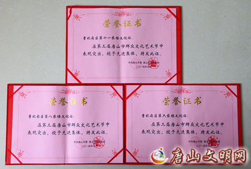 曹妃甸区六农场、八农场、十一农场荣获第三届群众文化艺术节先进集体奖。