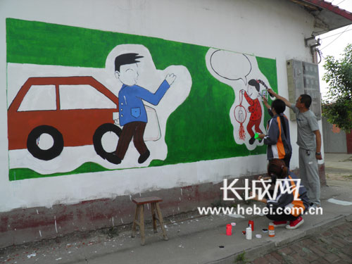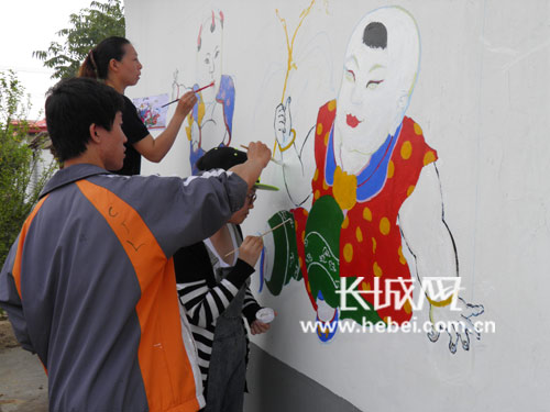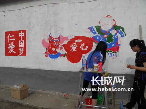 曹妃甸学子手绘“文化墙”助力农村面貌改造提升