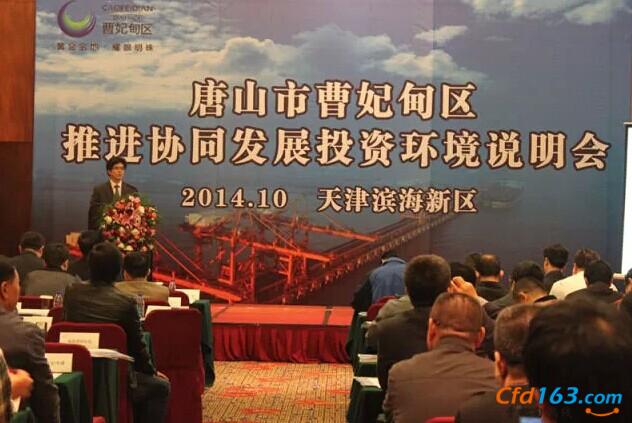 月25日,唐山市曹妃甸区推进协同发展投资环境说明会在天津滨海新区举行,副区长、工业区管委会副主任刘汉义,天津东疆保税区管委会副主任杨仲强、天津滨海新区商务委副主任纪泽民,以及来自天津的120家企业负责人参加了会议。