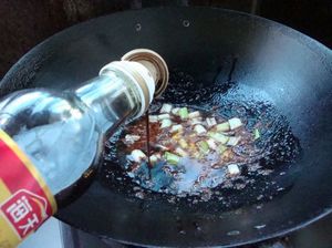 4.炒锅上火,倒入食用油烧热,下葱段煸出香味。