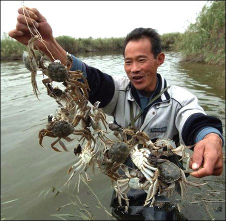 河蟹隶属甲壳纲,绒螯蟹属,是一种大型的甲壳动物,身体分21节,由于头部和胸部各节相互愈合,因此全身分为头胸部和腹部二部分。成蟹背面墨绿色,腹面灰白色,头胸甲平均长6-175px,宽187.5px。河蟹常穴居于江、河、湖沼的泥岸,夜间活动,以鱼、虾、动物尸体和谷物为食,每年秋季常洄游到出海的河口产卵,第二年35月孵化,发育成幼蟹后,再溯江河而上,在淡水中继续发育长大。河蟹的肉质鲜嫩,是深受人们喜爱的一味食品。螃蟹作为美味佳肴,自古以来备受人们的青睐。明代李时珍赞云:“鲜蟹和以姜醋,侑以醇酒,嚼黄持鳌,略赏风味。”清朝李渔更称螃蟹:“已造色、香、味三者之极,更无一物可以上之。”因此,素有“螃蟹上席百味淡”的美称。河蟹营养丰富,含有多种维生素,其中维生素A高于其它陆生及水生动物,维生素B2是肉类的5-6倍,比鱼类高出6-10倍,比蛋类高出2-3倍。维生素B1及磷的含量比一般鱼类高出6-10倍。每100克螃蟹可食部分含蛋白质17.5克,脂肪2.8克,磷182毫克,钙126毫克,铁2.8毫克。螃蟹壳除含丰富的钙外,还含有蟹红素、蟹黄素等。河蟹不但为食中佳肴,作为药用也有奇功。《本草拾遗》说:“其功不独散,而能和血也。”祖国医学认为螃蟹性寒味咸,蟹肉有清热、散血结、续断伤、理经脉和滋阴等功用;其壳可清热解毒、破淤清积止痛。 现代研究发现,蟹壳含有一种物质--甲壳质,甲壳质中可提炼出一种称为ACOS-6的物质,它具有低毒性免疫激活性质,动物实验已证实,该物质可抑制癌细胞的增殖和转移。