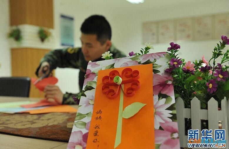 7日,在母亲节来临之际,河北边防总队曹妃甸边检站官兵们自制手工,准备在节日时为母亲献礼。
