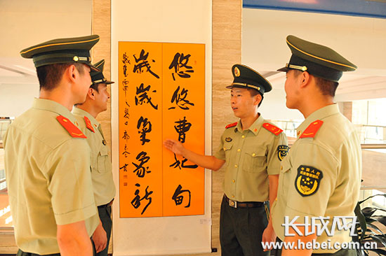 长城网唐山7月21日讯(武岳 记者 邢丁)7月20日,河北曹妃甸边检站30名官兵走进“协同发展迎春风翰墨光影话成就”书画摄影作品展现场,共同享受这份文化大餐。