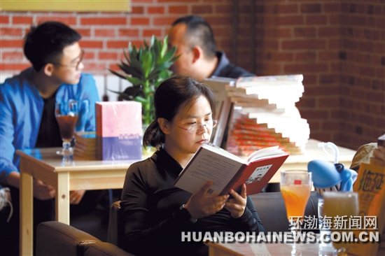 咖啡等饮品相伴,读者在店内读书。
